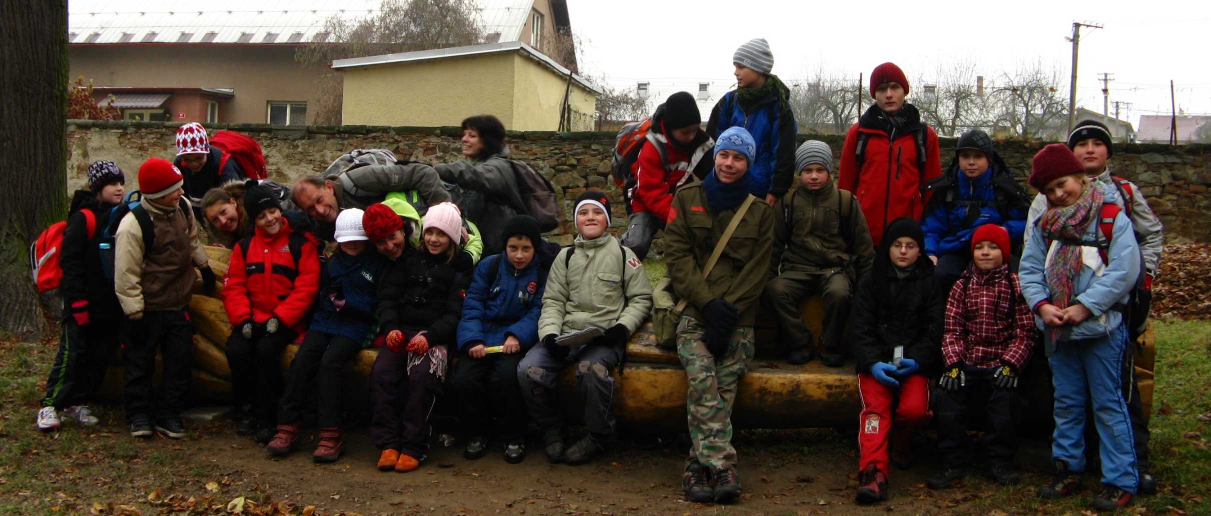 jsme se dostali k polozamrzlému rybníku.U něj jsme si zahráli pár pěkných her s kartičkami na zádech.Každý měl na kartičce jiné číslo a někteří jsme meli i křížek,