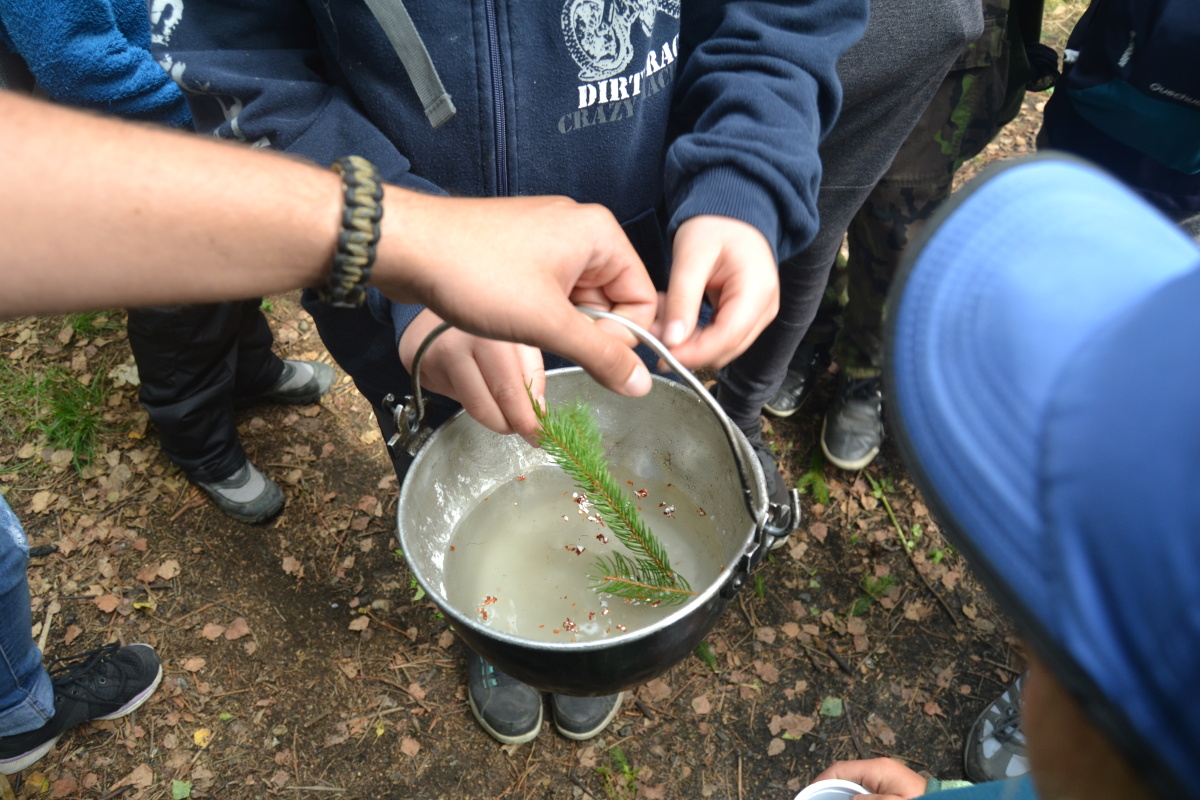Naše první společná výprava za nalezení léku proti lenosti (22.09.2018) započala v 9:00 u klubovny, kde jsme byli rozděleni do 5 skupin, ve kterých jsme se vydali k Penny Marketu. Dostali jsme 25 Kč za každého člena týmu a byli vysláni mezi spletité uličky regálů do boje s důchodci (a taky týmy) o důležité suroviny k životu (maršmelouny ehm, ehm). Byla nám též vysvětlena celo-schůzková hra s povoláními. Šli jsme směrem na Hamry. Po cestě jsme splnili úkol a dostali složení onoho léku. V již jmenované vesnici jsme dostali další úkol – sníst ČESNEK! (všichni tě od té chvíle máme moc rádi Pitris). Poté přišla další malinkatá výzva: držet se od každého při konverzaci dál jak na metr, aby neucítil jistý (ne)příjemný odér z vašich úst. Jsme si jisté, že na další akce si s sebou nezapomeneme vzít také orbitky. Následující surovinu jsme získali věšením fáborků po cestě k příští zastávce, na které jsme dostali (překvapivě) další surovinu. Nějakým zázrakem jsme se dostali na nejvyšší bod naší výpravy, což znamená další surovinu! Jdeme dál a sbíráme SUROVINY. (Upřímně, psát pouze slovo surovina nás přestává bavit). Dorazili jsme k ohništi a přišel čas, abychom ukázali naše kulinářské umění. Někteří vsadili na klasiku, jako jsou špekáčky a kečup (nejmenovaná skupinka se trochu rozjela s Hellmanns), jiní se malinkato rozvášnili a s vervou se pustili do přípravy o něco složitějších pokrmů, jako jsou špagety či špízy, čímž započaly opravdové Hunger Games (Gary Ross je oproti nám slabej režisér). Všechny suroviny jsme smíchali do kouzelného lektvaru a vzniklo cosi, čeho jsme se museli každý napít. Po obědové přestávce jsme pokračovali na louku, kde byla možnost zahrát si dvě hry – chytání lelků (ti chytřejší ví, co si vybrat) nebo bomba a štít pro zbytek (Eliško škubni si). Poté se staly 3 věci: