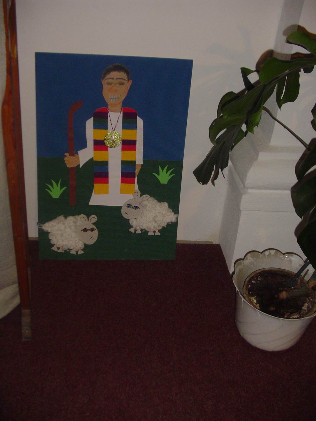informace, že se pan farář zrovna vrátil z lyží a je trošku "grogy".