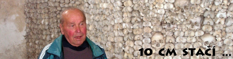 okolí faráře a klíč do světa úhledně poskládaných mrtvých. Přečetli jsme si tabulku na objektu kostnice. Ty ostatky jsou od raněných z válek v 17. století, kdy tu byl lazaret a ..no prostě ještě nebyla tak dobrá zdravotní péče jako dnes, že Zlesi. Výsledek? Přibližně 8 000 mrtvých. A právě jejich hroby se nacházeli všude po okolí, a tak se kosti dostaly na jedno místo a vznikla kostnice. Jakýsi slepý muž je pak poskládal do těchto útvarů a my se na ně můžeme přijet kouknout. Pan farář doplnil informace ještě poutavým výkladem, určeným i méně pozorným posluchačům, jelikož opakování je matka moudrosti. A pak skončil, chvíli bylo ticho, James se ležérně opíral o máry a přišla informace z úst pana faráře, která nám všem změnila život. Minimálně Zlesimu, který si ji, jako člověk z oboru vzal k srdci. Mrtvého stačí překrýt 10 cm zeminy. A tak jsme plni dojmů a živých obrazů s mrtvými a představou šplouchající rakve odjížděli zase dál, s vědomím, že stejně z nás nakonec budou jen kosti. I z kariéristy. Nasedli jsme, vyjeli kolem ZD Nížkov, minuli bramborárnu a kolem statku s koňmi přijeli do Sázavy. |