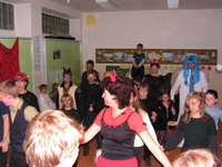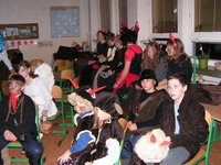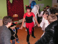 Byl to asi dost ďábelskej nápad - uspořádat místo návštěvy Pekla první ďábelskou diskotéku. Houf pekelných i andělských bytostí se přesunul z klubovny do školy a stanul před sálem pekelným. V temné místnosti za svitu svíček, paprsků dataprojektoru a za zvuku diskotékové hudby jsme zírali na projekční plochu, kde se odehrával jakýsi pekelný příběh. Tak to byl úvod do celého večera. A jak to bylo dál?