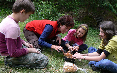 stavba grilovacího zařízení a akční zapojení dětí do pohodového