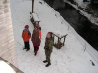 k pumpě. Šli jsme po zledovatělé silnici, no takže jsme spíš jely než šly..konečně jsme došly k tý pumpě, narvaly pod kohoutek barel a začly