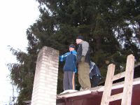 střechu. Někteří se ze střechy dostali po žebříku, někteří museli skočit… a teď už se mohlo začít topit. Došli jsme do dřevárky pro dřevo.