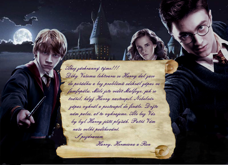 V pátek ráno jsme se sešli v 09:09 hod. na obvyklém místě na nádraží. Hermiona a Ron nám nejprve vysvětlili co se s Herrym stalo a co