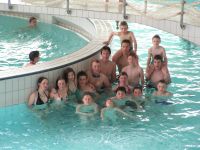 Nejlépe nám atmosféru vystihne Vency v kronice..."Přecházíme přes přechod, kolem je spousta hypermarketů a hned za rohem na nás bafá prosklená budova s nápisem Vodní ráj. Je 9:30, kupujeme lístky a odcházíme do šaten. (muži zvlášť a ženy zvlášť:D). A teď už se jen převlíct a šup do vody!! Ještě jsem se ani nestihla rozkoukat a už jsem se s davem hrnula na tobogán. Beky s Kubulou jeli mezi prvními, to víte my starší – nevíme co to s náma udělá!:D" No fakt nekonečný labůžo... |