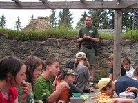 PÁTEK 19.6. - NEDĚLE 21.6.2009 ORLÍK LOUPEŽNÍKA DÁŠAJDY aneb Jéédu na kóóni, jééžííšmáárjáá! Provázeni tajnostmi a dešťovými mraky jsme došli až do lesů loupežníka Dášajdy. Na kopci jsme spatřili nádherný hrad. Tam kdybysme tak přespali... A taky jo! Fakt jsme spali na hradě a žili si tam jak parta loupežníků podle loupežnickýho kodexu celé tři dny. Noční hra ve sklepeních, taky trošku práce, vaření v černé kuchyni, výprava do okolí, večení divadlo, ranní hon na lišku a slepici, malá pevnost Boyard a všude samý stříbrňáky. Skvělá akce!!! |