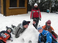 PÁTEK 30.1. - NEDĚLE 1.2.2009 BÍLÝ KRÁLÍK NA HORKÁCH aneb když se děti stanou vedoucími To bylo hlavní motto téhle pololetní akce. Odvážlivci Kačka, Puma, Honzys a James byli trochu zaskočeni hrát si tři dny na vedoucí, ale nakonec jsme všichni ve zdraví přežili, což byla jedna z Pitrisových podmínek. Nejvíc srandy jsme si asi užili u vaření, protože to byl opravdu systém pokus-omyl. A že se dá připálit i čaj! Ale i fotbálek, frisbee a ragby ve sněhu byly super. A proč vlastně bílý králík? To nepochopíš... |