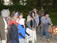 ČTVRTEK 30.4. - PÁTEK 1.5.2009 PERNÍKOVÁ CHALOUPKA NA VATÍNĚ aneb Konec Ježidědků v Čechách... V poslední dubnový den byla bouřka na spadnutí. Naštěstí přešla rychle, takže jsme Ježibabkám na Vatíně pomohli od protivných Ježidědků. Po prohře v hledání perníčků byl nakonec jeden z nich upálen. Posezení u ohně si užilo víc jak třicet duháků, ale někteří už večer museli odjet. Zbylá parta se nádherně vyspala ve srubu nebo venku a druhý den jsme mohli posnídat perníčky, uvařit čarodějnický guláš a zahrát si spoustu her. Krásný svátek práce! |