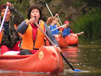 Pro ilustraci nálady nelze jinak, než vybrat kousíček z kroniky: "Vedoucí peloton se v klidu kochal krajinou, když vtom se přiřítil h0nza a všem zmrazil úsměv na rtech větou: „Nerad vám kazím nedělní odpoledne, ale ti vzádu založili mokrou unii…“ A měl pravdu; zadní posádky, mokré od hlavy k patě, se rozhodly využít krásného počasí a smočit zbytek skupiny, patrně aby jim to nebylo líto. Rozhostila se menší panika doprovázená cákáním vody..." Tak co, jedete příště znovu? |
