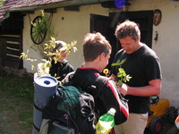 Kousek z kroniky: "Ale o to vtipnější jejich rozcvička byla - ve stylu Pata a Mata. Vrtali jsme vrtačkou, brousili flexou, sekali sekačkou a kosou, přesně jako správní kutilové. Po rozcvičce jsme si dali zdravou snídani - chleba se škvarkovou pomazánkou nebo s nutelou, a zájemci o opravdu zdravý životní styl se ještě zaplácli včerejším gulášem:) Pak jsme si trochu sbalili věci a vyrazili ven. Doma zůstali akorát kuchaři Rosi a Vency se šikovným a šikovnějším - alias Minim a Honzysem." |