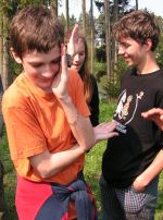 vpředu a Ema s těmi malými (jemnými hlasy) vzadu. Tomhle útvaru jsme šli až k silnici a dál,kde jsme si zahráli opět jednu bezva hru:(