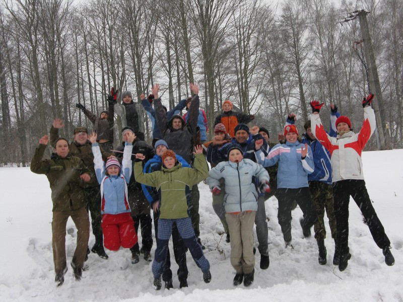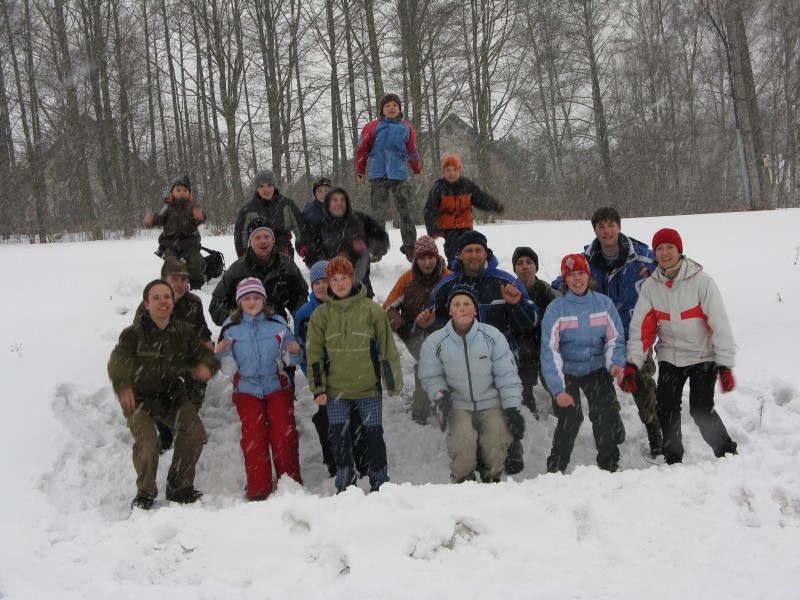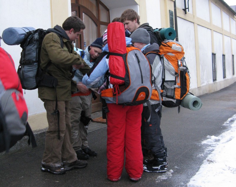 Sešli jsme se u zimáku. Nejdřív proběhla burza společných věcí a potom jsme se společně přesunuli k poště u Zelenky, kde skupinky
