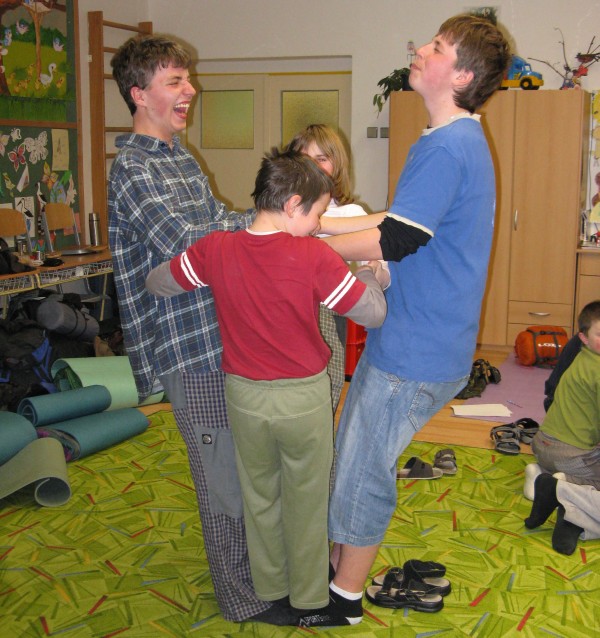 Všichni první úkol splnili a tak dostali další. Provléct klíč na provázku všemi ve skupině. Komu se to povede jako prvnímu, získá dopis
