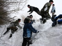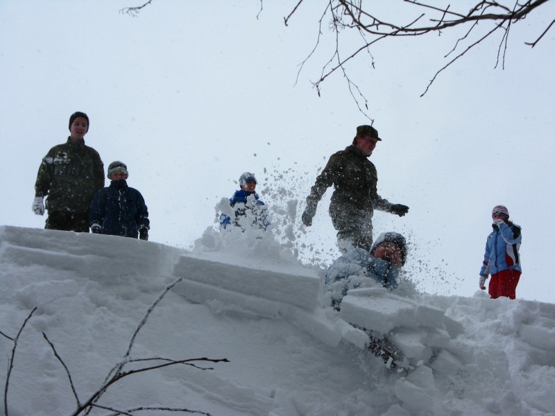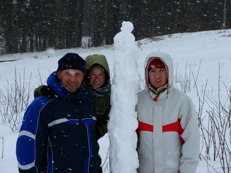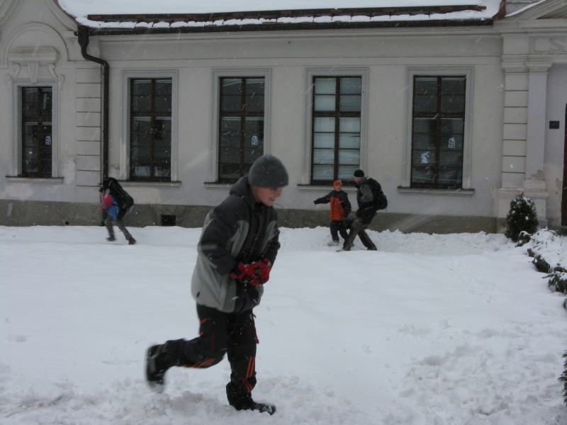 Nakonec se šel Rosi ještě podívat zpátky do školy (kde mimochodem zůstal) a my jsme si postavili věže ze sněhu. A po postavení bylo za úkol zbourat sněhovými koulemi
