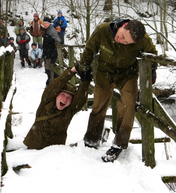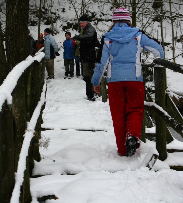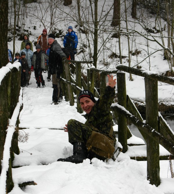 Poté přesun do školy - přes mostek u Černého lesa. Někomu se dařilo přejít,...