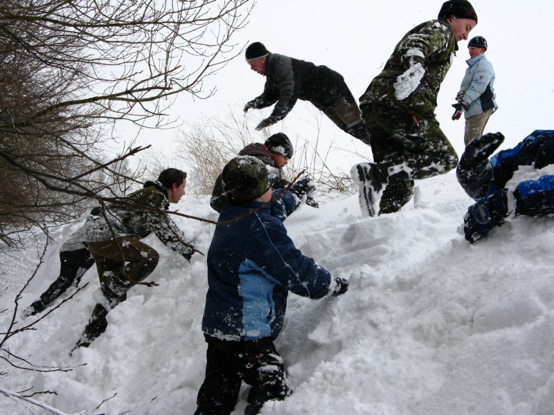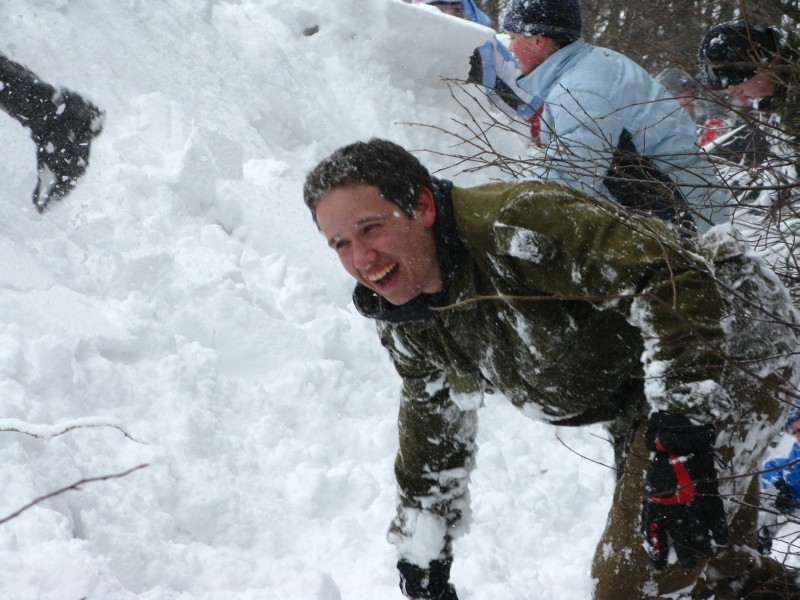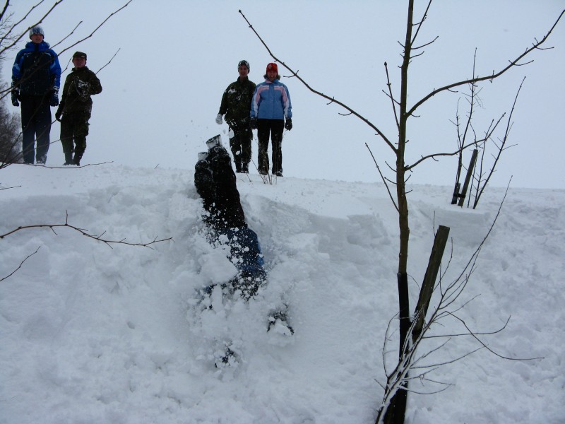 No a pak jsme objevili obrovské závěje, fakt bomba. Takže jsem všichni začali pořádně řádit.