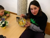 chvilku byli v zámeckém prostoru a ubytovávali se. Všichni už měli hlad, tak jsme ještě rychle zhltli večeři a hurá na další hry.