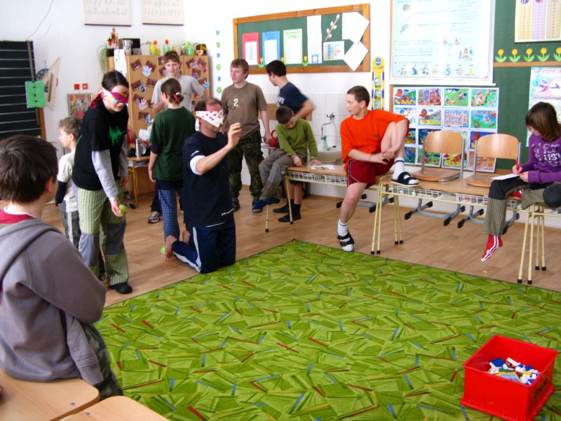 předvést těm, co mluvili, a ti, co mluvili, to museli vysvětlit slepému, který skládal. Zdá se to jednoduché, ale dost jsme se u toho