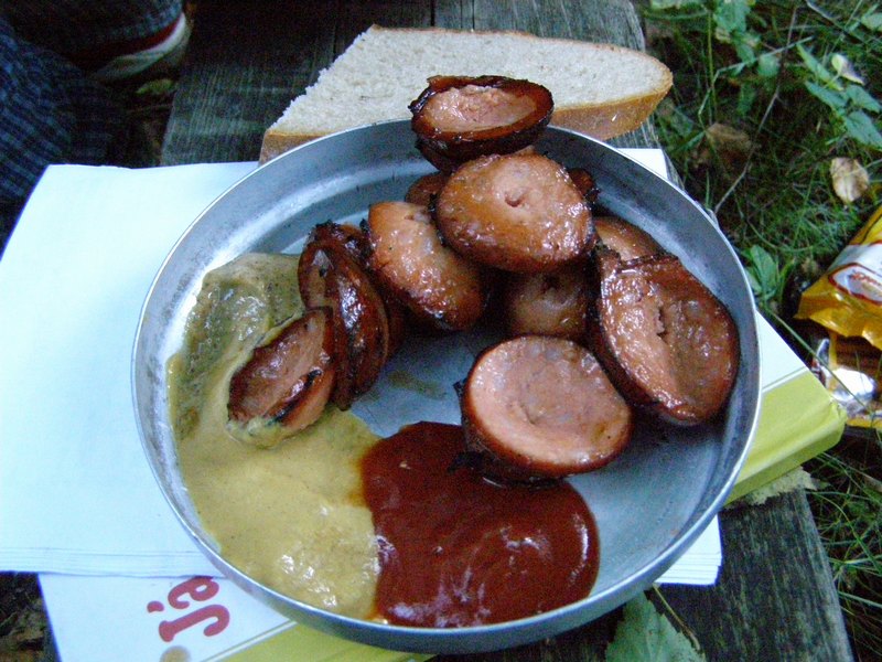 Večer si opékáme ulovené maso, když v tom slyšíme zvuk letadla,