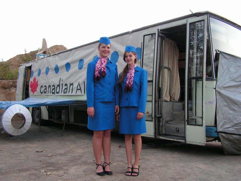 město. Přicházejí na letiště, kde je vítají letušky, v klidu